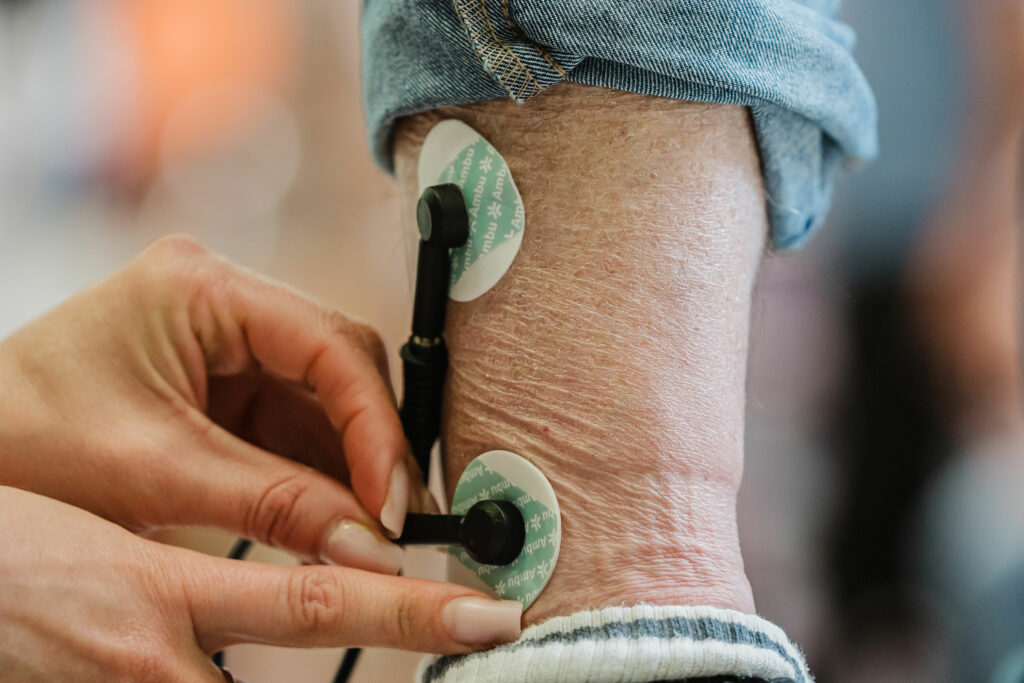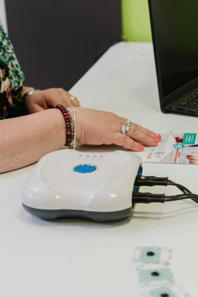 Il pose ensuite 4 électrodes type ECG sur vos mains et au dessus de vos chevilles. Pas de piqûre, pas de douleur : seulement quelques secondes d’installation.